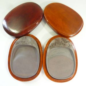 中国硯 花彫刻 唐木箱蓋付 書道具