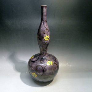 九谷焼 青山 紫釉 花唐草文 花瓶 花器 瓢箪