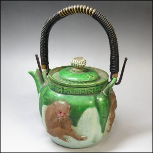 色絵 猿之図 極上 煎茶急須 萬古焼