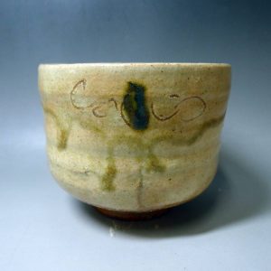 酒津 兜山窯 岡本蕭一 黄釉刻絵 茶碗