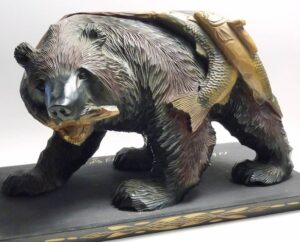 木彫 熊 木製 在銘 広峰 北海道 クマ 鮭 サケ 伝統工芸品 郷土玩具