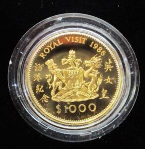 HONGKONG 香港 1000ドル金貨 1986年 エリザベス女王2世 英国女王 訪港紀念 プルーフ