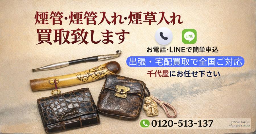 煙管、煙管入れ、煙草入れは工芸的価値を持つ骨董品です。処分前に専門査定をご利用ください。LINE申込み、出張買取、宅配買取すべて査定無料、全国対応で承っております。千代屋公式サイトもぜひご覧ください。